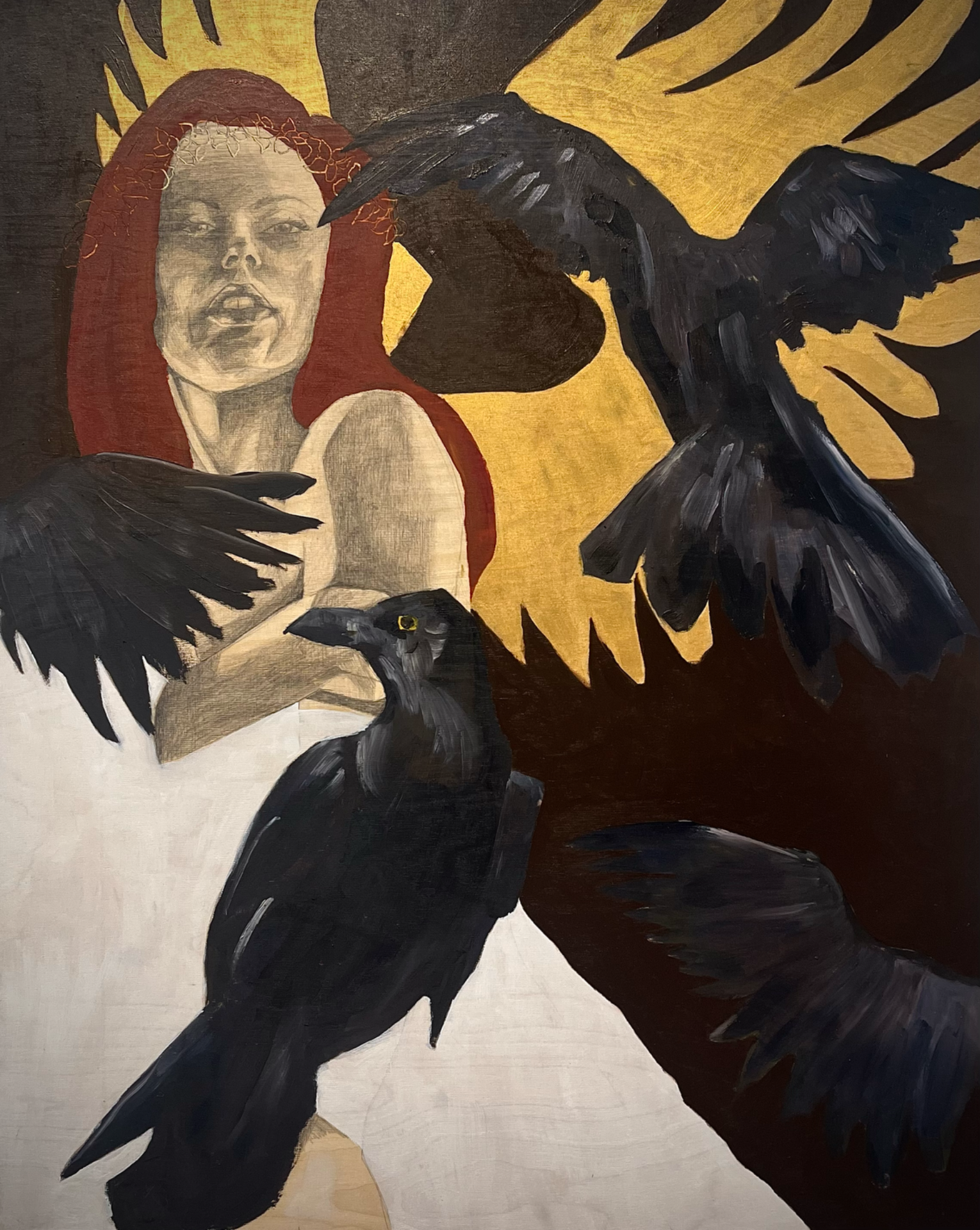 Tässä näyttelyssäni tutkin hämärän aikaa paitsi luonnonilmiönä, myös tunnetilana. Teokseni ovat syntyneet hetkistä, jolloin maailma ei ole enää valoisa mutta ei vielä pimeäkään, kun kaikki tuntuu pehmeämmältä, ja muisti, unet ja todellisuus alkavat lomittua. Taiteessani ihmishahmot, eläimet ja kasvit kietoutuvat toisiinsa kuin unen logiikalla, muodostaen uudenlaisen, vaihtoehtoisen todellisuuden, jossa hämärä on paitsi valon puutetta, myös tilaa ihmetykselle ja mielikuvitukselle.
